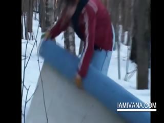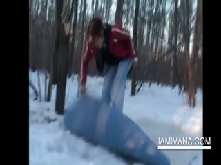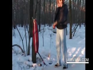 05:09 100% Sweet Ivana takes of undies in snowy woods