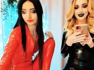 45:15 33% Pale blonde and tanned brunette lesbians toying and licking