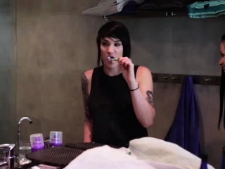 04:46 50% Goth Tattoo Roommates in Threesome Lesbian Sex