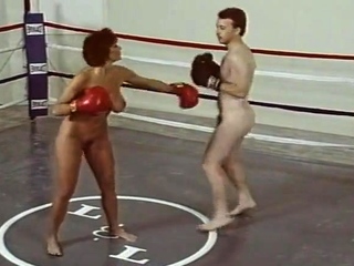 01:00 100% nude male vs female mixed naked boxing as with face punches