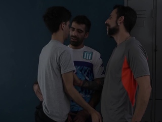 07:02 50% DILF trainer in locker room trio