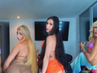 03:20 66% Four Hot busty shemale in their Bikini teasing on cam
